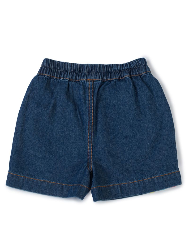 Pranava Organic Cotton Denim Three-Color Embroidered Shorts - Blue